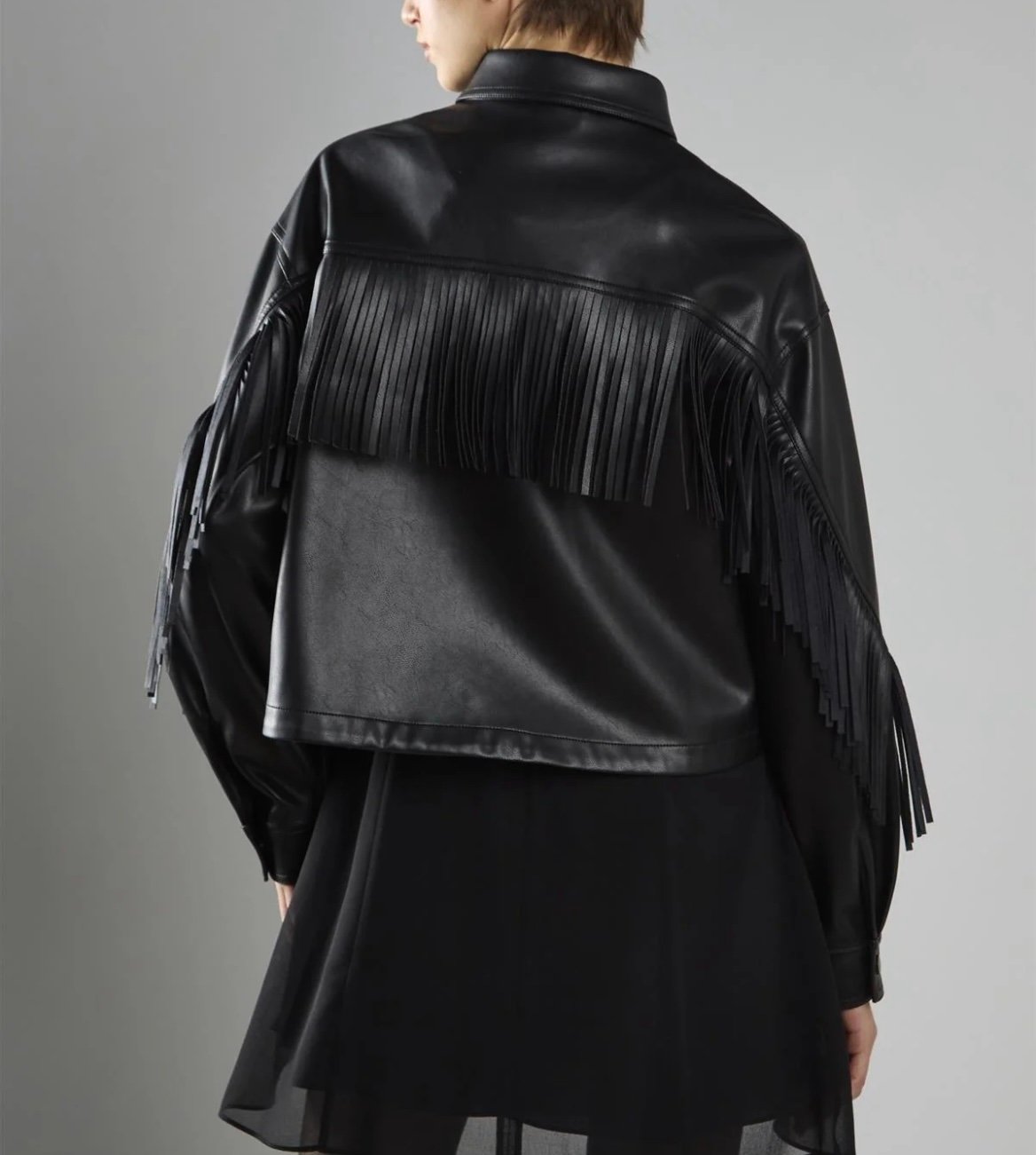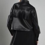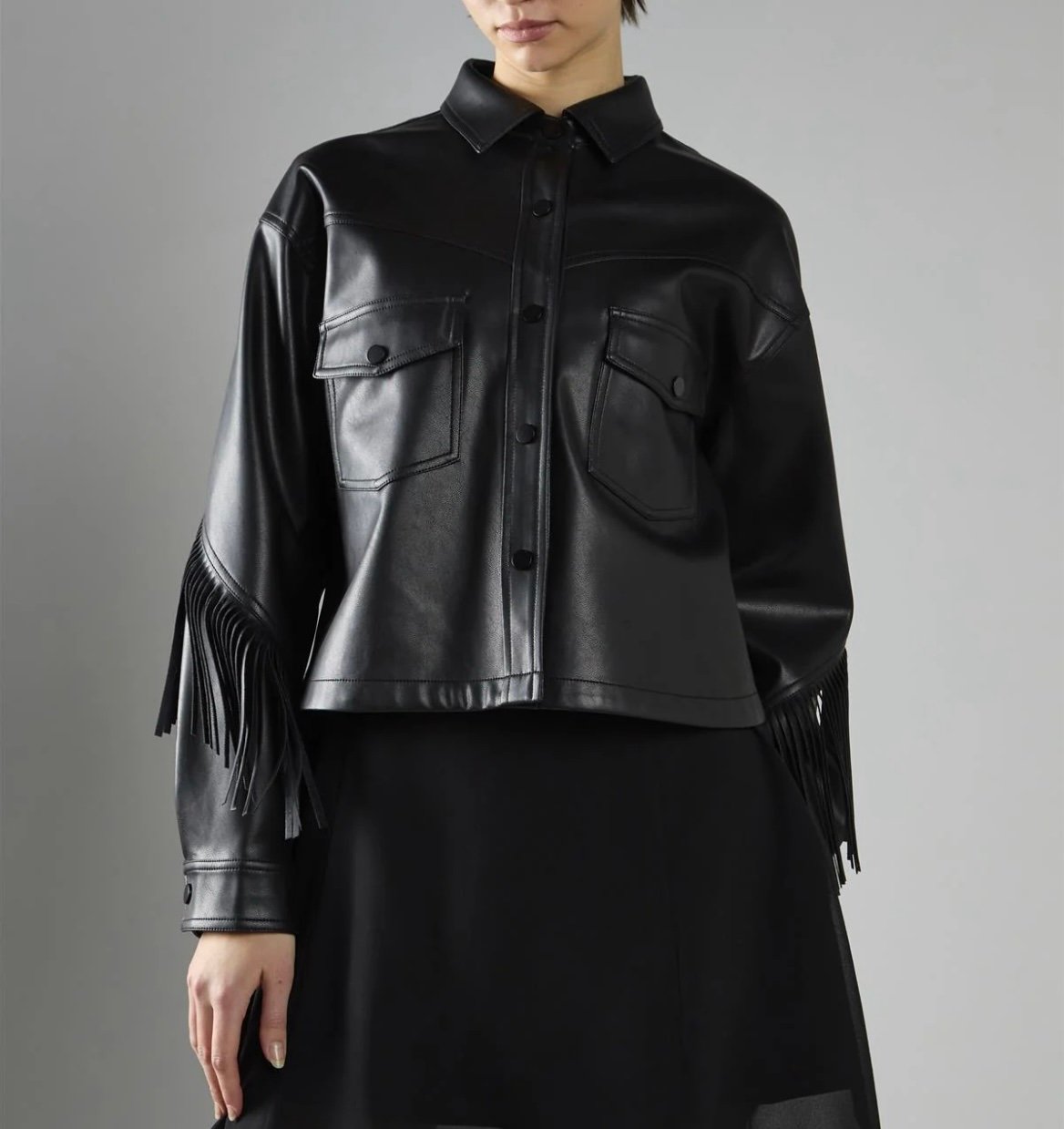 Giubbo con abbottonatura a pressione con frange.