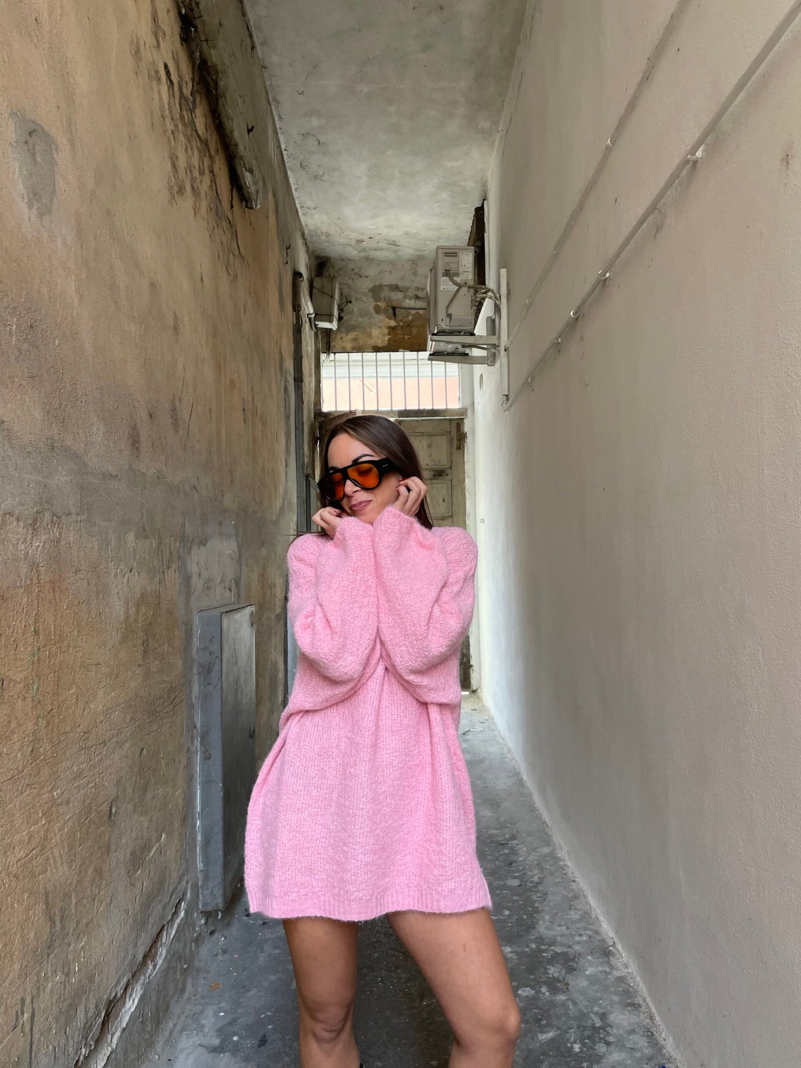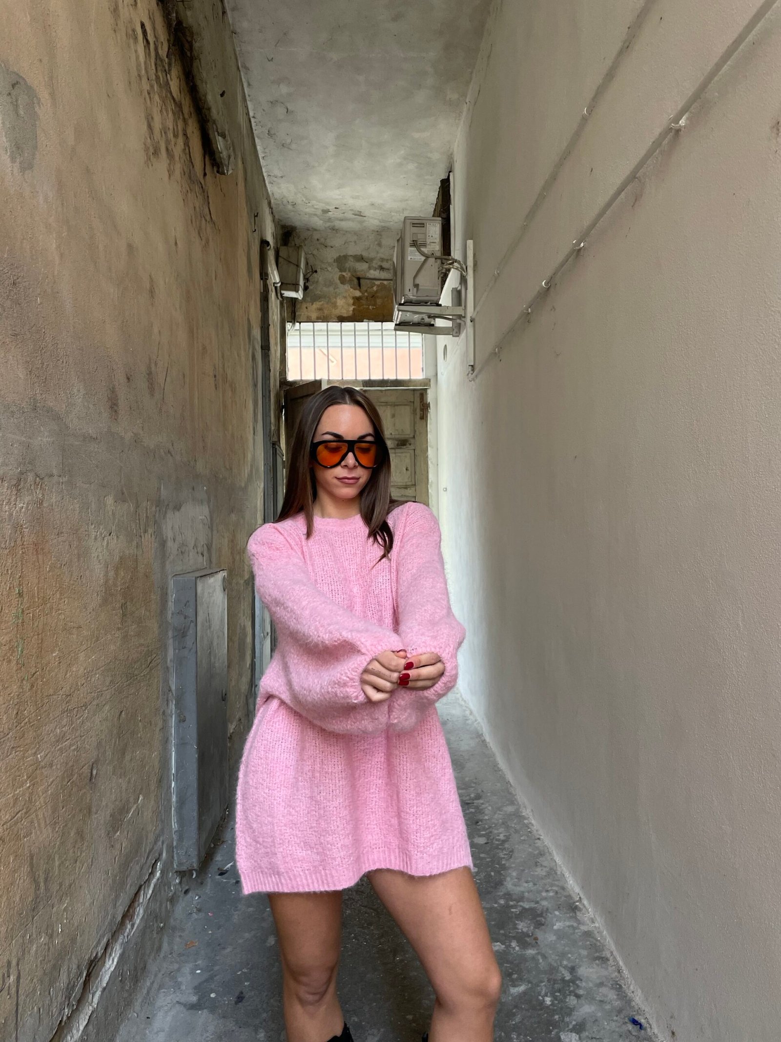 Maglione maxi rosa con manica a palloncino