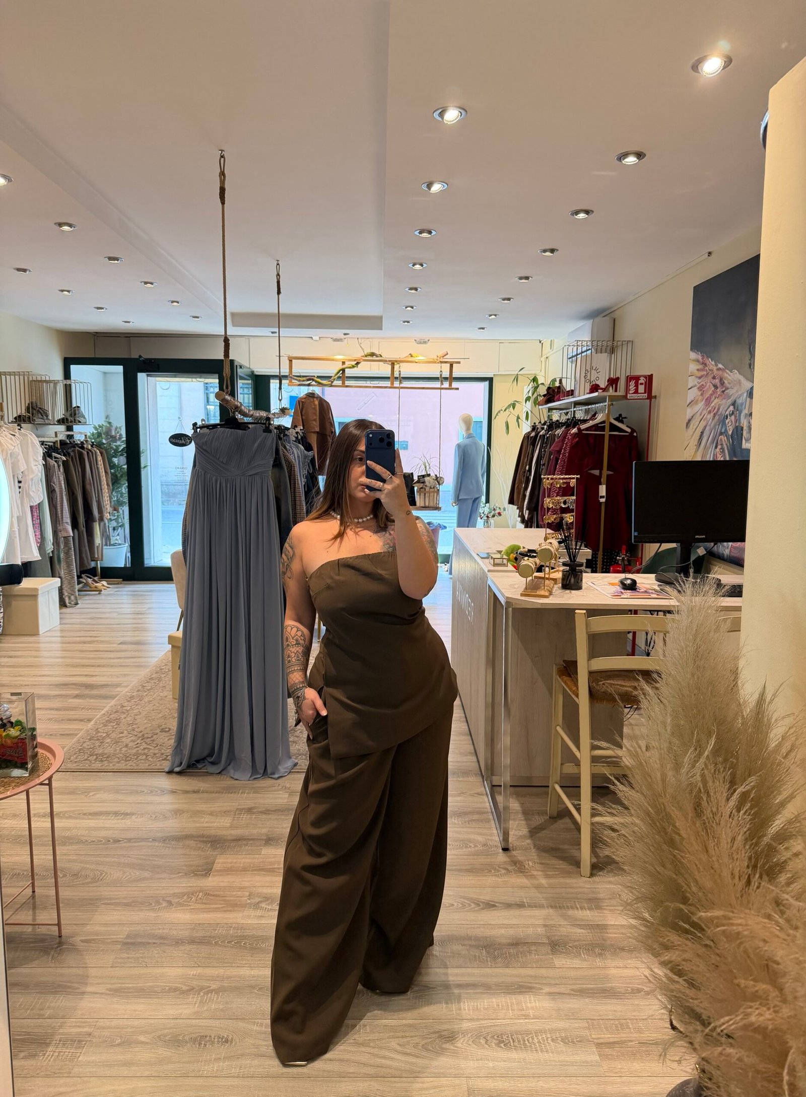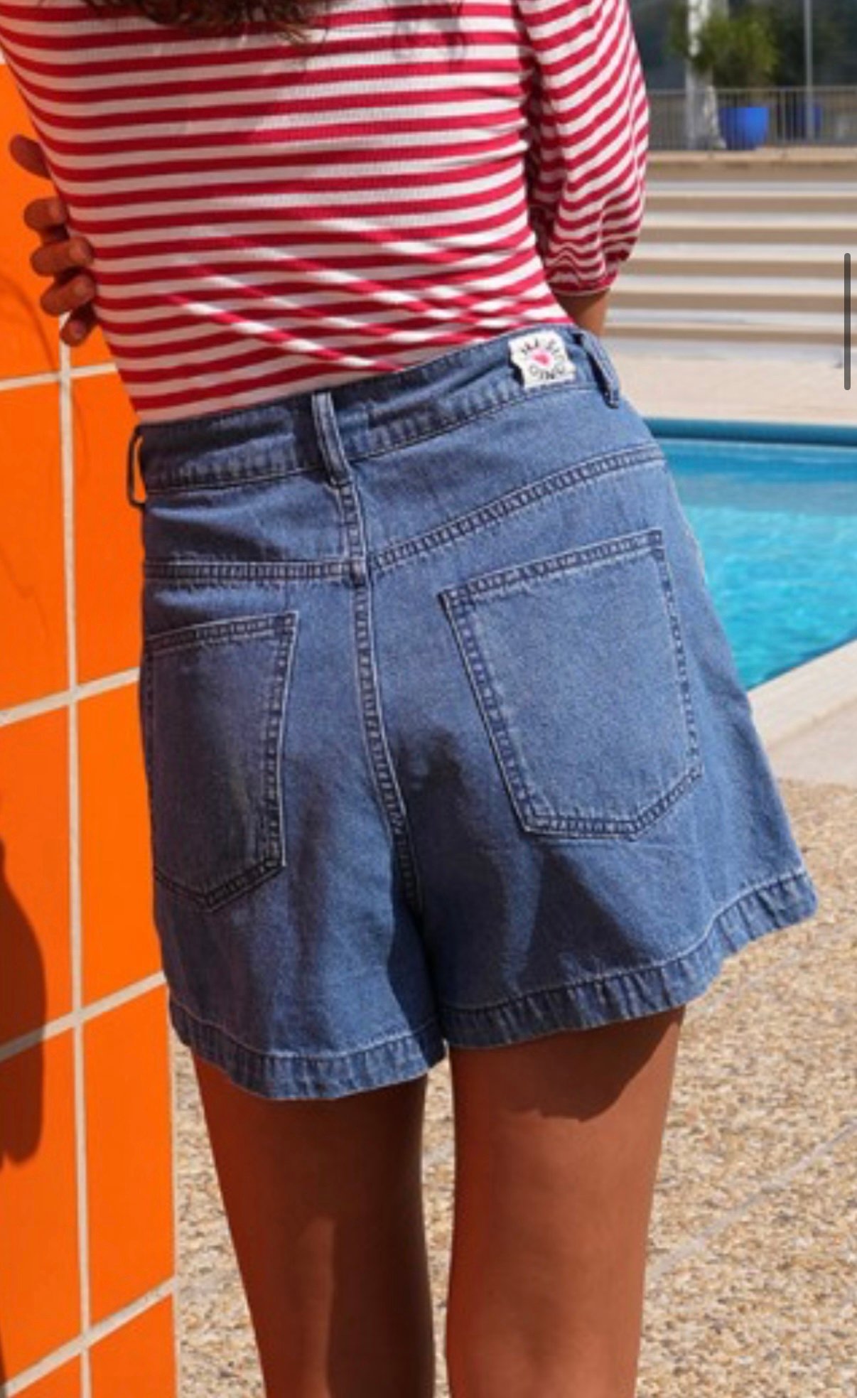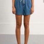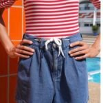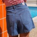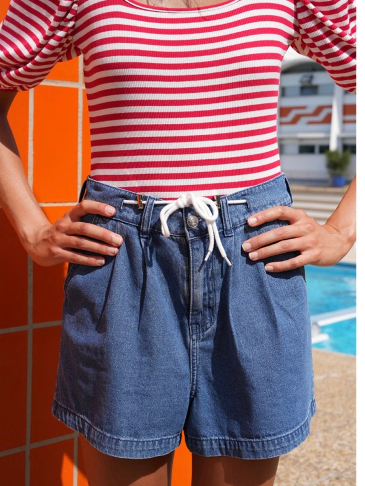Vita alta, con laccetto – Chiusura con cerniera e bottone – Pieghe anteriori – Tasche laterali – Tasche posteriori applicate – Vestibilità svasata